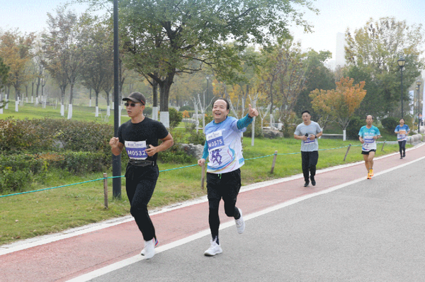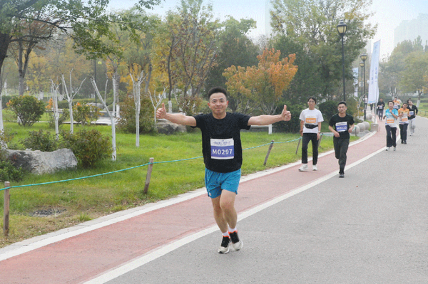 集結(jié)列陣 鳴笛開跑在鳴笛發(fā)令后,健康跑正式開跑!秋風(fēng)拂面,腳步鏗鏘,隊(duì)員們你追我趕、意氣風(fēng)發(fā),成為湖畔一道流動(dòng)的風(fēng)景線。