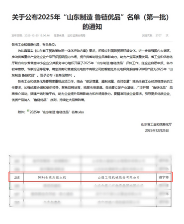 近日,山東省工業(yè)和信息化廳正式公布2025年第一批“山東制造·魯鏈優(yōu)品”名單。山東重工集團旗下山推股份自主研發(fā)的DH46全液壓推土機憑借領(lǐng)先的技術(shù)實力與卓越的產(chǎn)品性能成功入選。