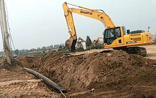 國內(nèi)某城市施工排水溝鋪設(shè)項(xiàng)目,使用山推系列挖掘機(jī)進(jìn)行排水溝挖掘工作,山推挖掘機(jī)以挖掘施工速度快、質(zhì)量性能優(yōu)異,故障率低的優(yōu)勢,成功入駐項(xiàng)目施工隊(duì)。