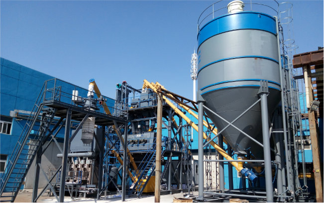 2016年12月,天津客戶采購(gòu)山推建友1套SjGZD040-3G型干混砂漿站成功應(yīng)用,用于預(yù)拌干混砂漿生產(chǎn)線。該設(shè)備砂倉(cāng)置于主樓設(shè)備頂部,粉料倉(cāng)置于主樓旁邊,計(jì)量系統(tǒng)位于攪拌機(jī)上邊,計(jì)量完成后物料直接卸入攪拌機(jī),具有占地面積小、生產(chǎn)率高、節(jié)能環(huán)保、等特點(diǎn),適合精細(xì)干混砂漿的生產(chǎn)。