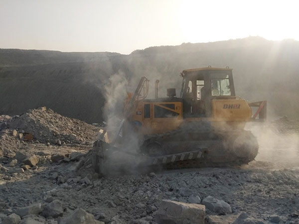 山推DH17推土機(jī)在印度某大型露天國(guó)有煤礦施工,該礦多巖石及土夾石工況,主要用于露天采煤工作平臺(tái)回填,以及爆破后采煤作業(yè)平臺(tái)碎石平整清理和短距離推運(yùn)等工作。工作強(qiáng)度大,三班倒每天工作15小時(shí)以上,環(huán)境溫度高,工地溫度高達(dá)50℃,持續(xù)約3個(gè)月。