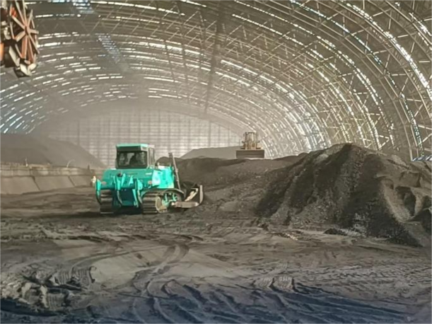 為進(jìn)一步優(yōu)化煤場作業(yè)效率,該電廠近期引入了山推兩臺DE26-X2電動(dòng)推土機(jī)與一臺LE60-X3電動(dòng)裝載機(jī),用于煤炭堆場的堆料與推運(yùn)管理。面對煤堆高、坡度陡等復(fù)雜地形,山推電動(dòng)推土機(jī)憑借強(qiáng)勁的輪邊直驅(qū)電機(jī)系統(tǒng),實(shí)現(xiàn)了動(dòng)力充沛、響應(yīng)靈敏的爬坡作業(yè)。同時(shí),高密封性駕駛室配合進(jìn)氣過濾系統(tǒng),有效隔絕揚(yáng)塵對作業(yè)人員健康的影響,提升了整體作業(yè)舒適度與安全性。