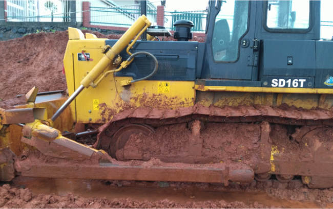 客戶新購買的SD16T機械推土機正在進行泥土鏟運作業(yè),在現(xiàn)場惡劣的工況下,出色的展現(xiàn)了機械推土機強勁高效、省油可靠的優(yōu)良性能,設(shè)備得到了客戶的好評。山推SD16T推土機采用成熟的機械傳動,傳動效率高,使用可靠,結(jié)構(gòu)合理;適用于公路、鐵路、礦山、機場、農(nóng)田等地面的推運、開挖、回填土石方以及其它散料的作業(yè)。
