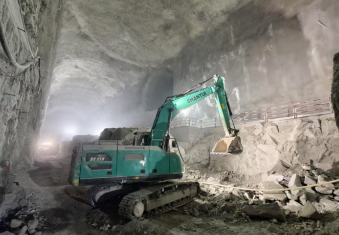 據(jù)介紹,該工程項目位于山東省中部,是國家規(guī)劃建設(shè)的重大能源基礎(chǔ)設(shè)施項目,總投資逾100億元,需開挖水道系統(tǒng)工程隧道2000米以上,以及引水系統(tǒng)斜井等高難度施工作業(yè),地理環(huán)境多變,特別是隧道內(nèi)施工,面臨著空間狹小、粉塵、潮濕等諸多挑戰(zhàn)?!八淼纼?nèi)施工,對挖掘機的通過性、操縱靈活性要求極高,這臺山推215電動挖掘機,日常操作動作順暢,連貫性強,尤其適合長時間高強度作業(yè),幾乎無動力衰減,而且不需要更換濾網(wǎng)濾芯,即使環(huán)境惡劣也不怕,用著不僅省錢還省心?!蓖诰驒C操作手說道。