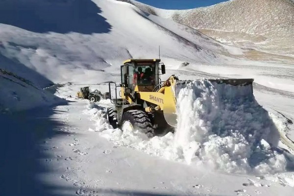 公路籌備組保通人員巡查發(fā)現(xiàn)險(xiǎn)情后,立即啟動(dòng)除雪保通應(yīng)急預(yù)案,積極投入到除雪保通工作中。為確保在最短的時(shí)間內(nèi)恢復(fù)道路通行,12名保通人員、5臺(tái)裝載機(jī)夜以繼日,冒雪夜戰(zhàn),清理積雪30多萬(wàn)立方米。此次參與公路除雪任務(wù)的山推5噸裝載機(jī),動(dòng)力強(qiáng)勁,轉(zhuǎn)向靈活,掘起力大,提升力強(qiáng),滿(mǎn)斗率高,特別適合松散物料的裝載鏟運(yùn)作業(yè)。歷時(shí)30多小時(shí),積雪路段恢復(fù)通行。為進(jìn)一步提高道路通行能力,保通人員繼續(xù)對(duì)該路段進(jìn)行路面拓寬施工,繼續(xù)奮戰(zhàn)6個(gè)多小時(shí),保通工作全面完成。