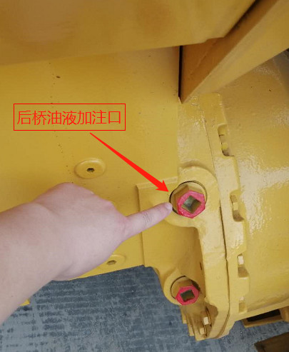 5.清理加注口,保持加注口清潔,拆開加注口,并清理放油口塞堵。到放油口處油液斷流時,將放油塞堵裝回緊固。從加注口加注油液(SAE15W-40 CF)。