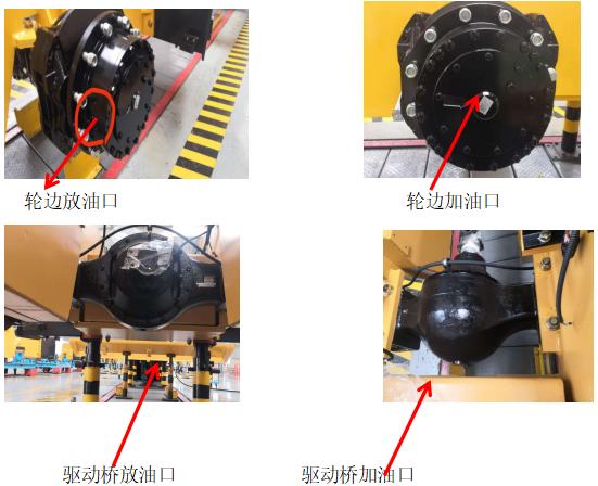 2、將壓路機停機10分鐘,冷卻齒輪油后。清理驅(qū)動橋橋包放油口與輪邊放油口上面的泥土,放出齒輪油。
